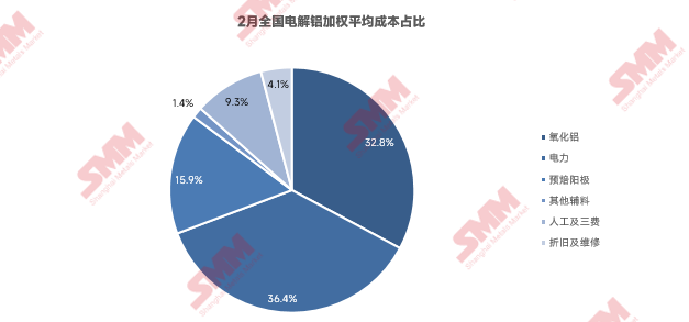 电价方面:2月电价总体趋稳,部分地区电价小幅降低,全国电解铝平均电力成本小降。