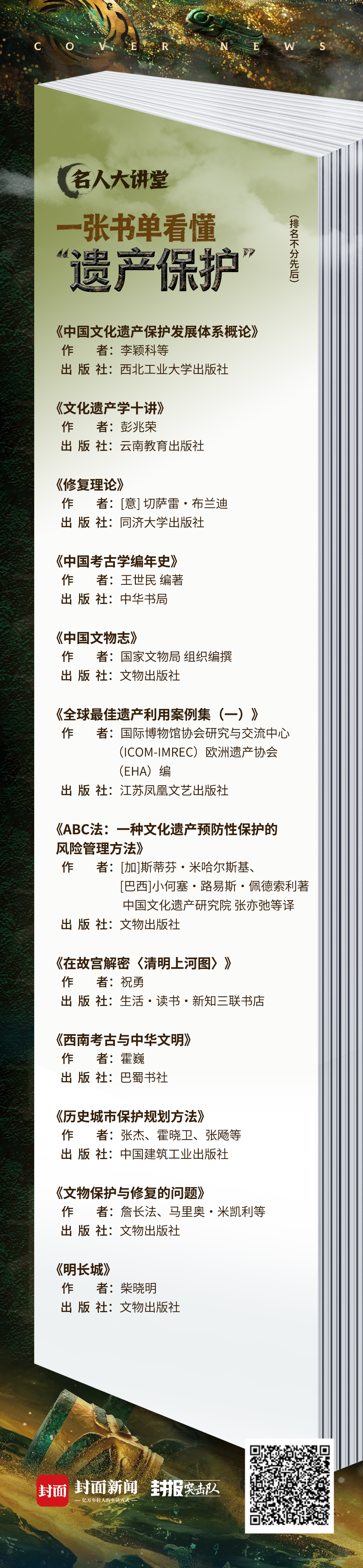 讲座虽然结束了,但话题远没说完。遗产保护这件事,听着宏大,其实和你我息息相关。它关乎我们如何认识自己从哪里来,也暗示着我们未来可以向何处去。我们结合专家与主讲嘉宾的推荐,综合普及类读物和专业读物等不同类别,精选出这份书单,带你继续深入遗产保护的世界。