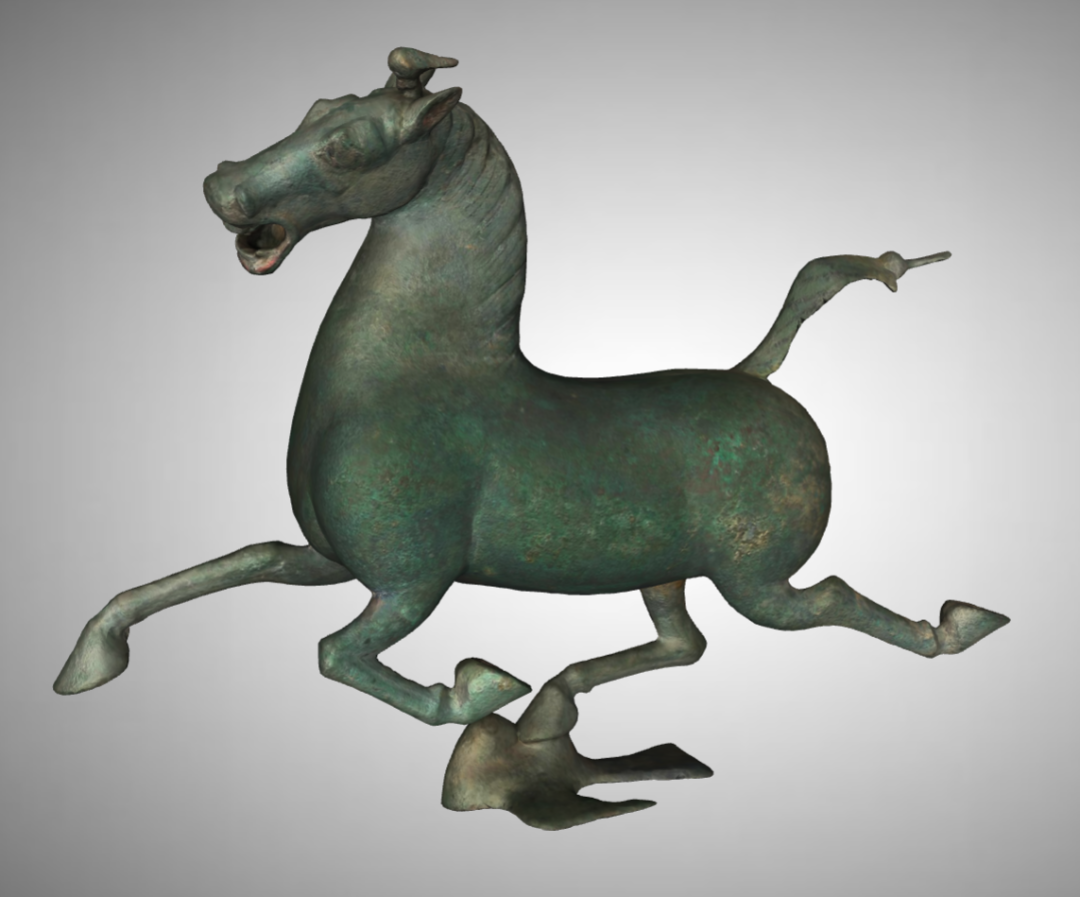 在古代中国,马并非单纯的代步或作战工具,而是一种被赋予神性的动物。《山海经·北山经》中就记载了“天马”,称其“状如白犬而黑头,见人则飞”。李白也有《天马歌》:“天马来出月支窟,背为虎纹龙翼骨。”尽显天马的神异姿态。《汉书·礼乐志》中记载了武帝所作的《天马歌》:“天马徕兮西极,经万里兮归有德,承灵感兮障外国,涉流沙兮四夷服。”相传,汉武帝之所以如此渴望得到天马,便是希望能借助天马的神性,带着自己飞升天界。汉武帝对天马的追寻,还有一段真实的历史典故。彼时,张骞第二次出使西域后,乌孙王派遣使者向汉武帝献上数十匹战马,武帝十分喜爱,将其命名为“天马”。后来,武帝得知大宛国有一种“神马”,即“汗血马”,便派遣“贰师将军”李广利等人率兵远征大宛,最终将这种良马引入西汉。此后,武帝将从大宛引入的“汗血马”重新命名为“天马”,而之前的乌孙马则改名为“西极马”。汉武帝对“天马”的追寻,展现了马在古代文化中的神性地位。